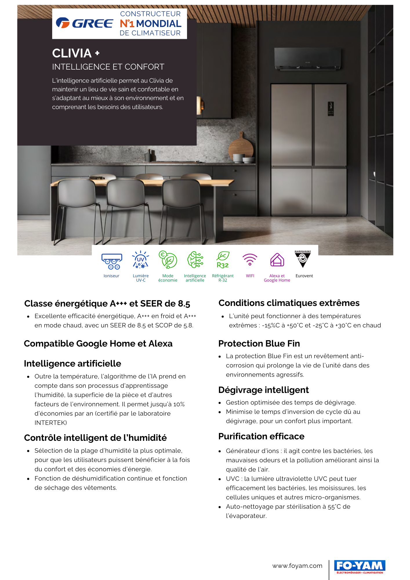 Le climatiseur réversible Mural offre une excellente performance, efficacité énergétique et confort thermique. Il est puissant et simple d'utilisation.