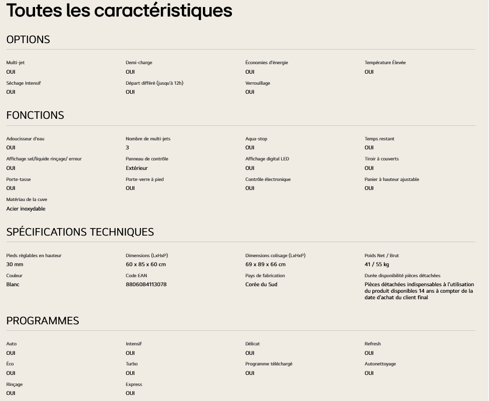 Lave-vaisselle LG 14 couverts DF243FVS