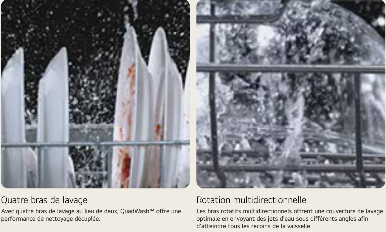 • QuadWash™ - Quatre bras de lavage, rotation multidirectionnelle